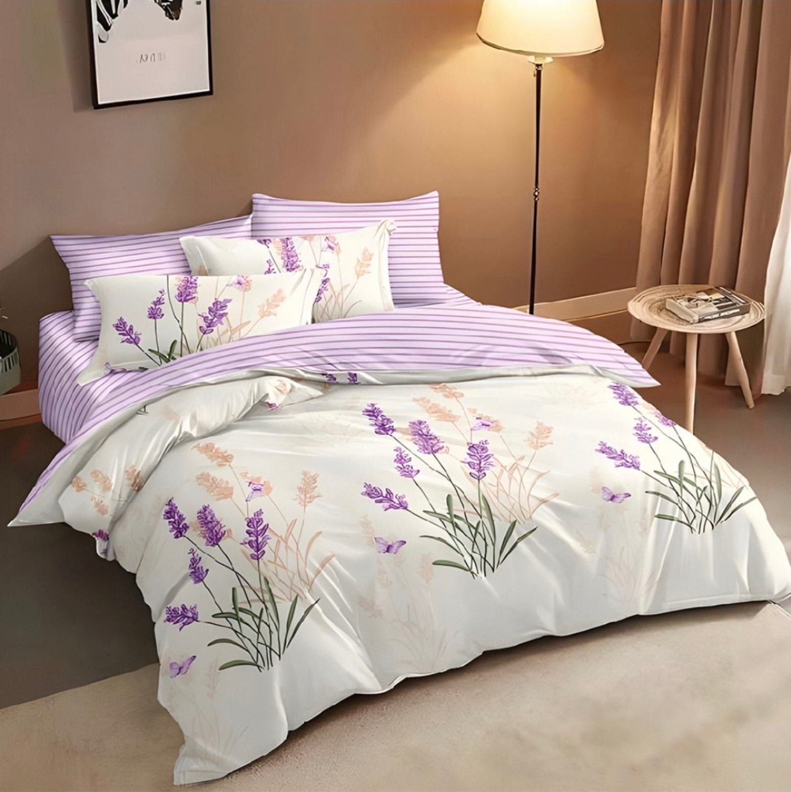 Спалният комплект АМЕЛИЯ носи усещане за лукс, комфорт и нежност във всяка спалня. Изработен от 100% сатениран памук, той е изключително мек на допир, с фин блясък и дълготрайна издръжливост. Съчетава стилна бяло-лилава цветова гама, която внася свежест и изисканост в интериора.