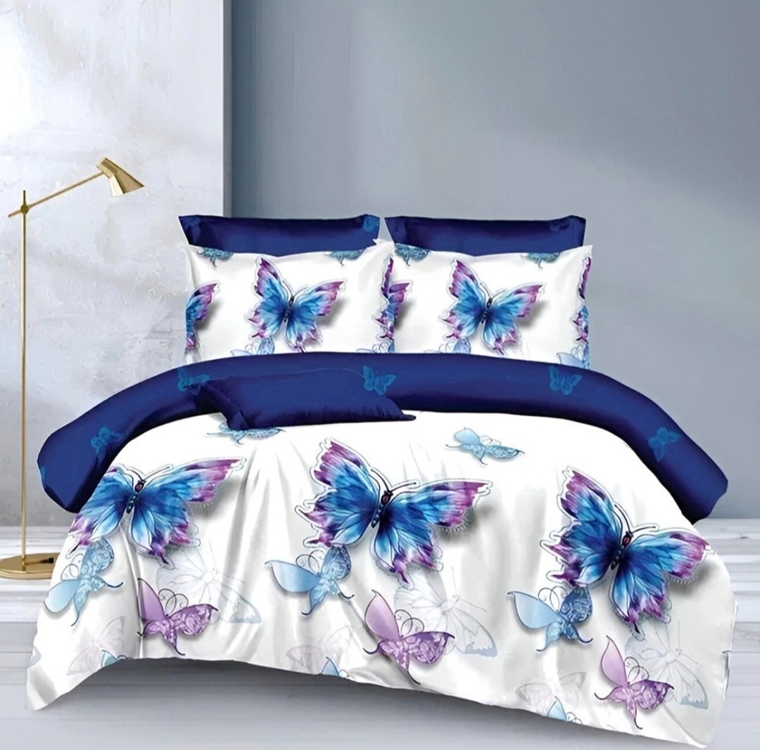„Диамантена пеперуда“ е елегантен 6-частов спален комплект, съчетаващ изчистена белота и наситено тъмносиньо в хармоничен контраст. Акцентът – стилизирани пеперуди – придава изящество и усещане за лекота.
